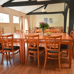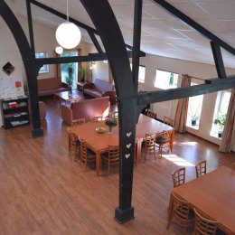 Voorzieningen De accommodatie beschikt over een ruime keuken (26m2) die van alle gemakken is voorzien en geschikt is voor zelfverzorging. (met o.a. wasmachine, wasdroger en vaatwasser). In overleg is maaltijdverzorging door een plaatselijke cateraar mogelijk. De verblijfsruimte (140m2) beschikt over een eet- en zitgedeelte en is sfeervol ingericht. Van hieruit heeft men een schitterend uitzicht over het Sallandse coulisselandschap.