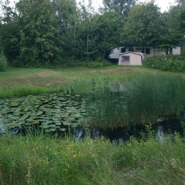 De camping is geheel omzoomd door een houtwal, met onderandere fruit-, noten- en tamme kastanje bomen. Het is een oase van rust. Hier word je omgeven door groen, weilanden en boerderijdieren. Alhoewel de vogels en kikkers zich wel laten horen. Want er zijn veel vogels en er is een kikkerpoel met .... ja écht, kikkers.