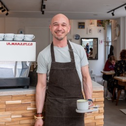 Pak jouw 'Momentum' in deze frisse en gezellige koffiebar, waar je prima kunt zitten voor een kopje koffie met huisgemaakte sweets. Ook de gegrilde broodjes bij de lunch zijn een aanrader!