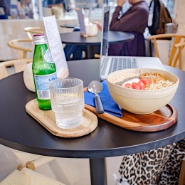 Of je nu de dag goed wilt beginnen met een gezond ontbijt, een gezellige lunch plant met vrienden, of gewoon zin hebt in iets lekkers voor tussendoor. Neem plaats in het knusse restaurant en geniet van de ontspannen sfeer, of kies voor gemak en neem je favorieten mee voor onderweg.