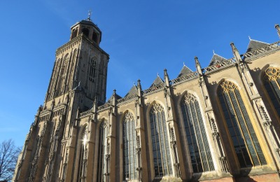 Het lopen door de Lebuinuskerk is al een overweldigende ervaring door de hoge gewelven en de omvang van het gebouw, de gids maakt het bezoek extra bijzonder door alle informatie die ze verstrekt. De kerk stamt uit de 11de eeuw maar op deze plek aan het Grote Kerkhof stond al eerder een kerkje, gesticht door Lebuinus. "Hij was een Angelsaksische prediker die werd uitgezonden vanuit Engeland om hier het geloof te brengen. Eerst ging hij naar Wilp en daarna naar Deventer, een nederzetting aan de IJssel. Waarschijnlijk op deze plek bouwde hij in 768 een houten kerkje. Hij is in 772 gestorven in de Assenstraat, aan de colde. Dat is aan de kou in het dialect en niet aan de kolder in de kop wat mensen soms denken als ze dit horen."