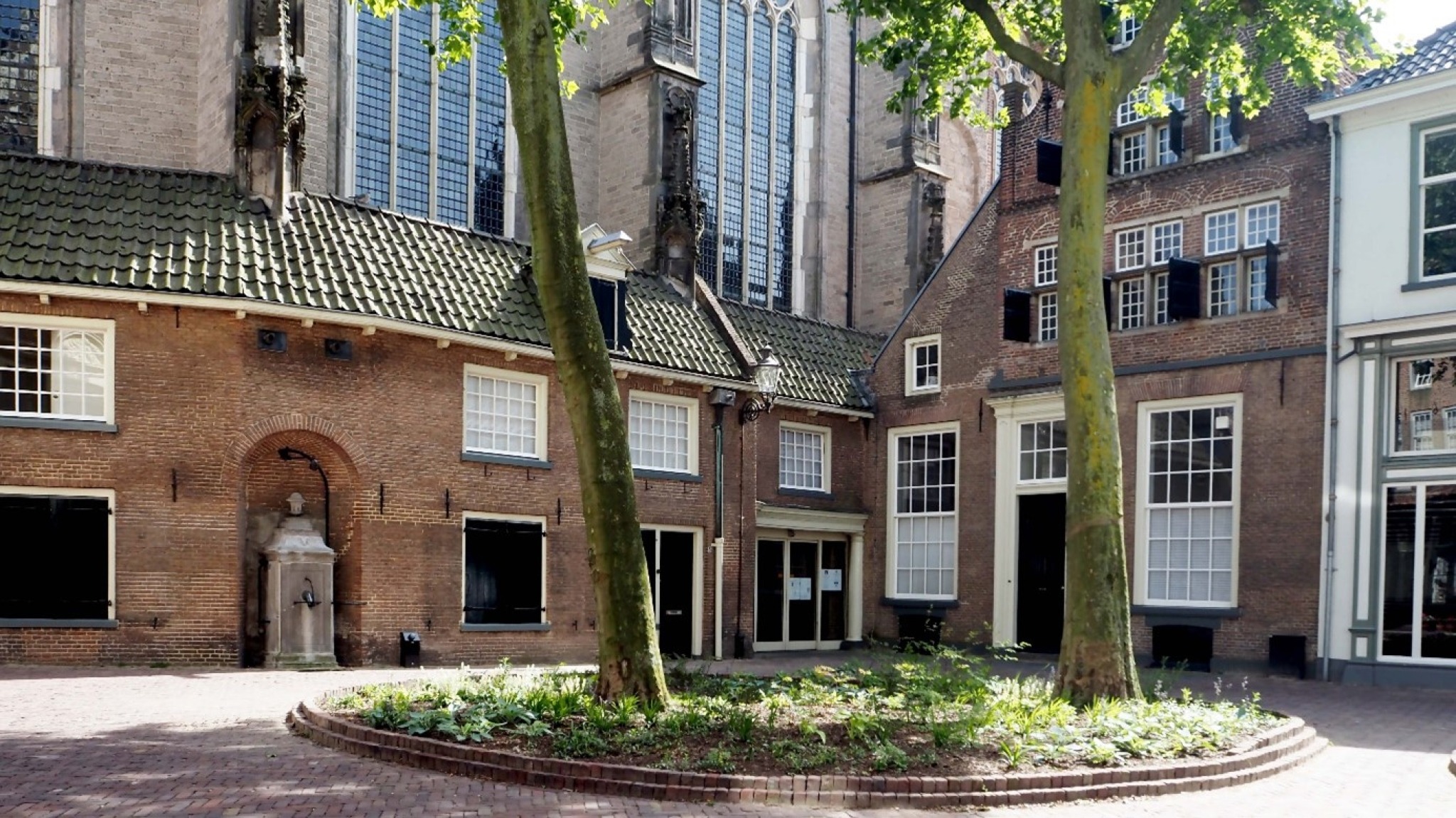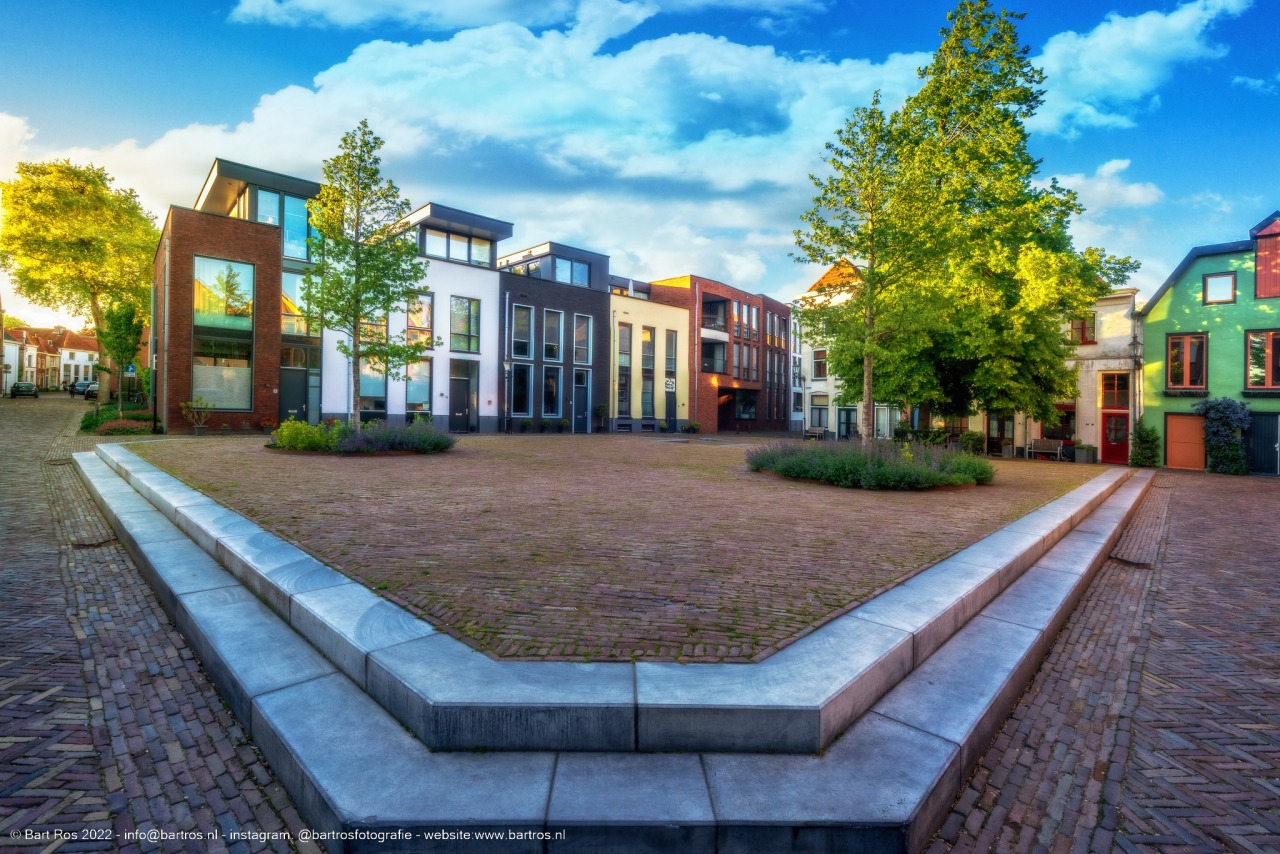 Neem plaats op één van de bankjes. Midden in de oude binnenstad zit je in een weldadige, open ruimte.
