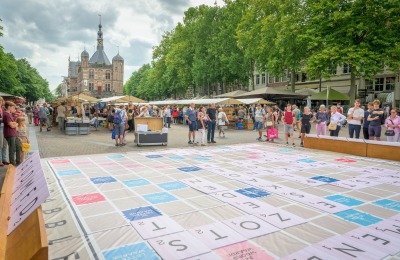 Wij dagen je uit om tijdens het Woordwaarde Festival je woordenschat te testen en je creativiteit te stimuleren. Neem bijvoorbeeld deel aan de Scrabble Competitie in De Sjoel en Davo. De finale vindt plaats op de Brink waar weer een enorm Scrabblebord van 10 bij 10 meter wordt uitgerold.