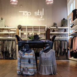 Top Stijl is een kelding- en bijoux boetiek voor vrouwen. Hier vind je een prachtige combinatie tussen casual en chique. Mooie kleuren en printjes die je met elkaar kunt stylen en af kunt maken met bijzondere sieraden. Ideaal voor het scoren van een volledige outfit.